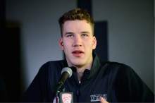 To make up for it, Utah brought out a framed No. 42 jersey during the press conference that Krystkowiak said Poeltl would be able to take with him, along with the Kareem Abdul-Jabbar Award and the Pete Newell award trophies.