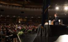 About 2,200 delegates filled Cottonwood High School and its parking lots, forcing some to walk from far away. House Speaker Greg Hughes missed giving the opening prayer. He told delegates later he had to walk from a mile away. "I should have taken Uber."