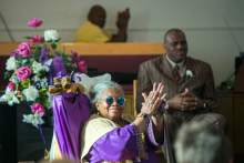 Rev. Nurjhan Govan claps her hands during a pastor appreciation service at Trinity African Methodist Episcopal Church Sunday April 17, 2016. The Rev. Nurjhan Govan has ministered tirelessly for more than a dozen years to members of the Trinity African Methodist Episcopal (AME) Church ó longer than any other pastor at the Salt Lake City landmark.