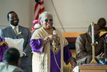 Rev. Nurjhan Govan sings during a pastor appreciation service at Trinity African Methodist