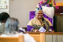 Rev. Nurjhan Govan smiles as she listens during a pastor appreciation service at Trinity African Methodist Episcopal Church Sunday April 17, 2016. The Rev. Nurjhan Govan has ministered tirelessly for more than a dozen years to members of the Trinity African Methodist Episcopal (AME) Church -- longer than any other pastor at the Salt Lake City landmark.