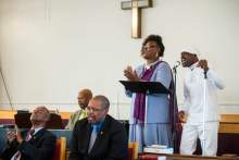 Kevin Nelson and Gwedlyn Minor sing during a pastor appreciation service at Trinity African Methodist Episcopal Church Sunday April 17, 2016. The Rev. Nurjhan Govan has ministered tirelessly for more than a dozen years to members of the Trinity African Methodist Episcopal (AME) Church -- longer than any other pastor at the Salt Lake City landmark.
