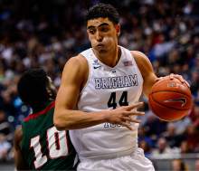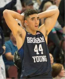 Brigham Young Cougars center Corbin Kaufusi (44) as BYU hosts Mississippi Valley State, NCAA basketball at the Marriott Center in Provo, Wednesday November 25, 2015.