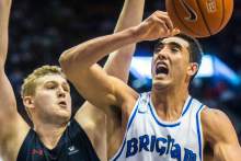 Brigham Young Cougars center Corbin Kaufusi (44) and St. Mary's Gaels center Jock Landale