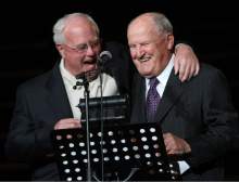 Many came at weekly media gatherings in Salt Lake City, where he sat at a table with the state's other major college football coaches and regaled reporters with tales and anecdotes and formed lifelong friendships, including one with his biggest rival, former University of Utah coach Ron McBride.
