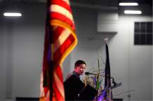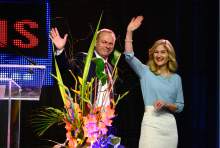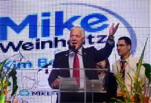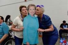 As the candidate wrapped up his speech, Donna Weinholtz walked onstage, hugged her husband and waved to the crowd. A delegate to the 2012 Democratic National Convention, she was also one of 13 liberals arrested at the state Capitol in 2014 during a demonstration in support of anti-discrimination legislation focused on the state's gay and lesbian community.
