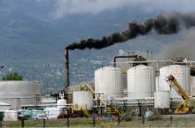 Firefighters battle a smoky fire from an asphalt container at an industrial refinery at 2600 S. 1600 W. in Woods Cross Tuesday April 26.