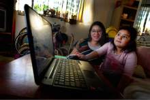 Despite encouragement from her mother, Laura De La Cruz, who coos "Sí, puede" "Yes, you can" and at one point offers ice cream as an incentive, 4-year-old Joselinne sits defiantly with arms crossed and head down, ignoring the laptop computer in front of her.