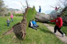 Ogden public works crews, meanwhile, were expected to face sidewalk repairs in a couple locations where large trees toppled, upending concrete in the process.