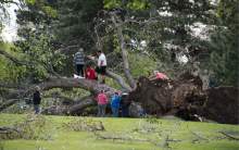 One of his stops was a green-waste collection site in Farmington where hundreds of volunteers were busy bringing in debris from toppled trees and busted branches.