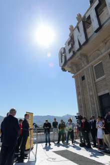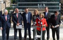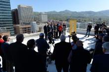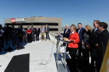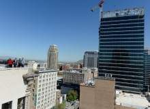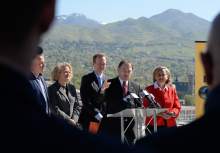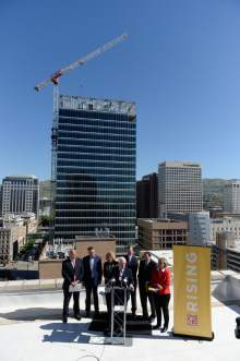 Utah Gov. Gary Herbert joined Salt Lake City Mayor Jackie Biskupski, Salt Lake County Mayor Ben McAdams, business leaders and other stakeholders in unveiling a new push for downtown development, in a made-for-TV event atop the Walker Center rooftop on Main Street.