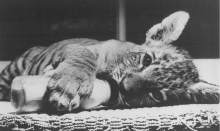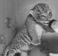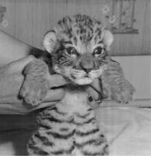 When she reached 30 pounds, she was put on public display and was instantly the zoo's star. Huge crowds came to see the cat with the face of a lion and stripes of a tiger.