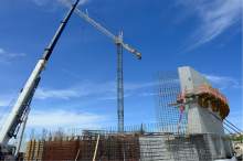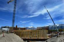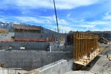 Jeff Beecher, executive vice president of Layton Construction, said the project currently employs 90 workers and expects to expand to 250 to 300 in upcoming months. He called the building a very complicated concrete and steel project, requiring 970 ton of rebar, to reinforce walls that extend 60 feet below grade and 112 feet above ground.