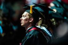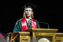Charles Koronkowski, this year's student speaker, encouraged graduates to "embrace the cliche" of commencement, and to maintain the ideals, hopes and ambitions they gained at the university.