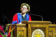 The university also awarded four honorary degrees, to businessmen Kem Gardner and George Smith, scientist Kirk Ririe and philanthropist Lynette Nielsen Gay.