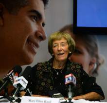 Device recipient Mary Ellen Kaull talks about the Watchman left atrial appendage closure device, a life-saving and heart-preserving cardiac device that has been tested extensively in clinical trials by scientists and cardiologists at the Intermountain Medical Center Heart Institute in Murray. The device will be available this month, for the first time, to all eligible Utah patients for widespread clinical care outside of the research arena. The device is the first and only one of its kind available in the United States. The Intermountain Medical Center Heart Institute has been one of the leading national research sites, and is the first and only Utah hospital authorized to implant the device at this point. The device was introduced at a press conference at the Intermountain Medical Center Doty Education Center in Murray, Utah Monday May 16, 2016.