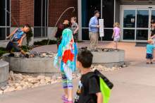 Police returned in the afternoon and asked for Hinckley amid others planning to protest, where a Tribune photographer and reporter identified themselves. Officers then went inside the center to talk to city officials.