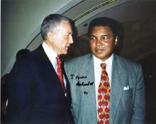 The framed display was inscribed: "To my dear friend Orrin Hatch, the man who should be president of the United States. With the highest respect and the deepest affection From one champion to another. Love, Muhammad Ali. August 1, 1988."