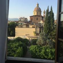 In about two hours' time, I was checking into an old monastery that has been converted into a hotel on the south side of the Arno River, outside the tourist district. The place, Casa Santo Nome di Gesù, was quaint and charming with a rich interior of wood and glass and paintings of nuns and priests. My bedroom window looked over a courtyard with a beautiful view of the Cappella di Brancacci built in the 14th century that alone was worth 109 euros a day.