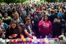 "She lit my candle, and we shared the umbrella and we started crying ... realizing that it's not right to be numb to mass murder, and it shouldn't be something we become used to," Donnelly said.