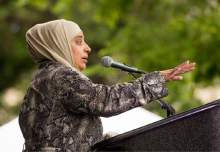 She asked the crowd not to fear Muslims in Utah and pointed to the Golden Rule as taught in Islam.