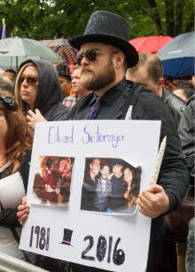 Stephen Bolinder, who attended the vigil in full regalia and makeup as part of the Zion Curtain Sisters LGBT order, said he was "apprehensive" to appear in public in feminine dress as Sister Spyd'a Web, his identity in the order.