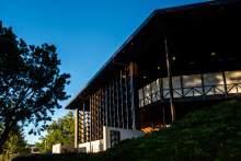 One design challenge was to maintain the proportions of the stage and the intimacy of the house while slightly increasing the number of seats, from 888 in the Adams to 913 in the Engelstad. The rake, the angle of the theater's seats, was steepened to improve sight lines. A combination of absorptive and reflective materials were selected to create a lively "bounce" of sound from the stage while blocking outside noise, Blalock says.