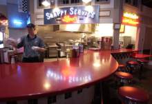 This tiny diner originally opened in downtown Salt Lake City at 57 S. State. It served hamburgers, fries and shakes and at one time was best known for its Spam and egg sandwich. In 2002, when the building was sold, longtime customer Larry H. Miller moved the shop to Jordan Commons, his new entertainment complex in Sandy. Snappy Service restaurants have been added to subsequent Megaplex Theater complexes in South Jordan, Centerville, Lehi and Ogden.