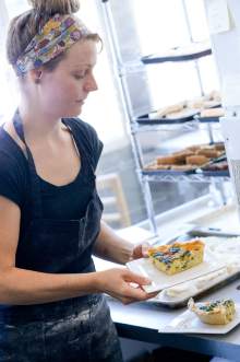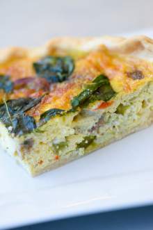 A generous slice (think quarter of a small pie tin) of breakfast quiche ($4) was loaded with fresh mushrooms, green pepper, spinach and cheese surrounded by a flaky, buttery crust.