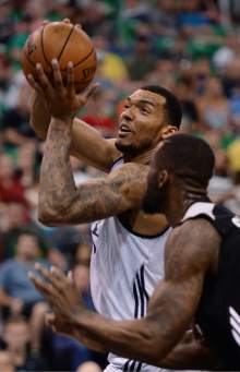 Utah Jazz guard Tyrone Wallace cuts to the basket during the Jazz versus Spurs during summer league game at the Vivint Smart Home Arena in Salt Lake City Monday July 4, 2016.