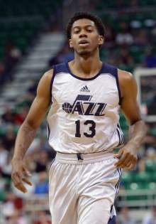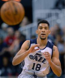 Utah Jazz guard Olivier Hanlan calls for the ball during the Jazz versus Spurs during summer league game at the Vivint Smart Home Arena in Salt Lake City Monday July 4, 2016.