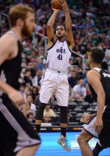 Utah Jazz forward Trey Lyles fires a shot during the Jazz versus Spurs summer league game a