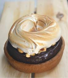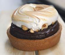 At the new location of Bubble & Brown Morning Shop in downtown Salt Lake City, owner and pastry chef Andrew Young offers the hazelnut s'more tart ($5) as a tribute to summer. It features a housemade graham cracker tart shell filled with dark chocolate cake (made with toasted hazelnuts for an earthy, crunchy note), chocolate ganache and airy meringue.
