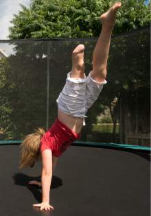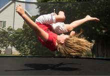 Lydia Petrucka, 10, jumps on the trampoline in her back yard. She will be attending the Amput