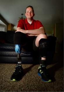 Ryan Bahr, a 21-year-old amputee from Murray, Utah has been chosen to serve as a counselor at the Amputee Coalition's Paddy Rossbach Youth Camp July 8-13 in Clarksville, Ohio. Bahr poses at his home in Murray, Saturday, July 2, 2016.