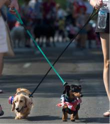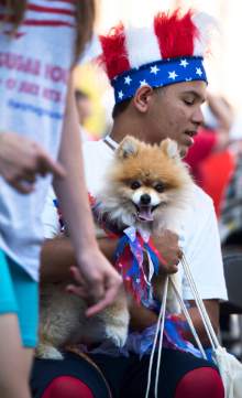 The Salt Lake City neighborhood's third annual Fourth of July pet parade drew roughly four dozen dogs, some in tutus, sunglasses and star-spangled top hats. Canine participants ranged from tiny teacup Yorkies and dachshunds to Rottweilers and a fluffy Samoyed, a breed native to Siberia.