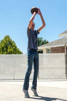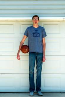 On his way to 6-7 by sixth grade, Van Komen struggled in elementary school, by his father's account, with teachers expecting him to behave like an older child and other children unable to relate to him. He blended in better in junior high and is uncomfortable with his height only "in the halls, just looking over everybody," he said.