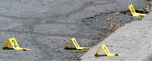 Salt Lake City police markers near shell casings at the of a scene of a drive-by shooting W