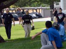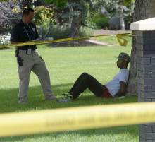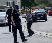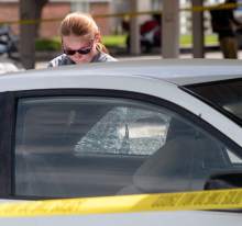 Salt Lake City Police interview witnesses at the scene of a drive-by shooting Wednesday, Ju
