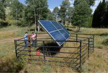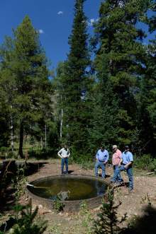 The first stop on the ranchers' recent tour was a system of troughs constructed this year on a Forest Service allotment. The three 10-foot-diameter circular troughs were fashioned from huge tires recycled from mining trucks. The tires were sliced in half, laid on the ground and each filled with 1,300 gallons from a well equipped with a solar-powered pump a few miles away.