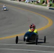 Grayson Hardman, 14, lays down some of the fastest times with Blue Steel as kids compete in the 6th annual American Fork Gravity Soap Box Derby on Thursday July 7th, 2016.