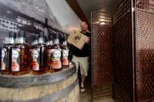 At Ogden's Own Distillery, the tiny hallway that leads to the bottling room and restroom also doubles as a tasting area where guests can sample the spirits and liqueurs made on site.