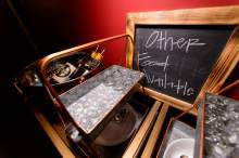 At Ogden's Own, where space is minimal, Conlin decided to place a tasting table in the back hallway and separate the area with an accordion screen made of wicker.