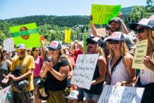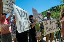 About 250 residents rallied Wednesday in front of City Hall as Vail CEO Robert Katz met with Park City Mayor Jack Thomas.