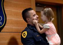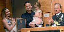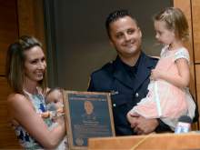 Jack Rinchich, president of the National Association of Chiefs of Police/American Police Hall of Fame, presented Hone a 10-year veteran with the Salt Lake City department with a replica of the plaque at a ceremony at the Salt Lake City Police Department.