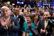 Republican National Committee Chairman Reince Priebus later took the stage to explain to the audience why four states voting for other candidates were nevertheless recorded as backing Trump. A party rule says delegates' votes only can be counted for a candidate still in the race and Trump was the only one left. That drew cheers from the mostly pro-Trump audience.