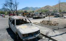 The fire scarred an estimated 30 acres of grass and sagebrush along with several outbuildings and vehicles. Eyewitnesses said the blaze burned hot and fast, leveling a half-dozen homes in a matter of minutes.