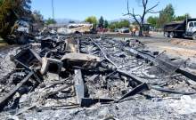 The fire blackened 30 acres of grass and sagebrush along with several outbuildings and vehicles. Eyewitnesses said the blaze burned hot and fast, leveling a half-dozen homes in a matter of minutes.