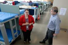 The Road Home's Midvale shelter can house up to 300 people. It is designed for families and is a peaceful world away from the tumult of Rio Grande Street.