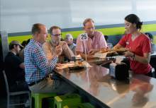 This Main Street location is actually two buildings Proper Burger Co. and Proper Brewing Co. The brewing segment is a bar and beer store, but you can order food from the restaurant to be delivered next door at the bar. Table service isn't available in either location, but the line moves quickly at the restaurant, so you can get back to Skee-Ball and pool on the bar side or simply enjoying your company on the patio at Proper Burger.